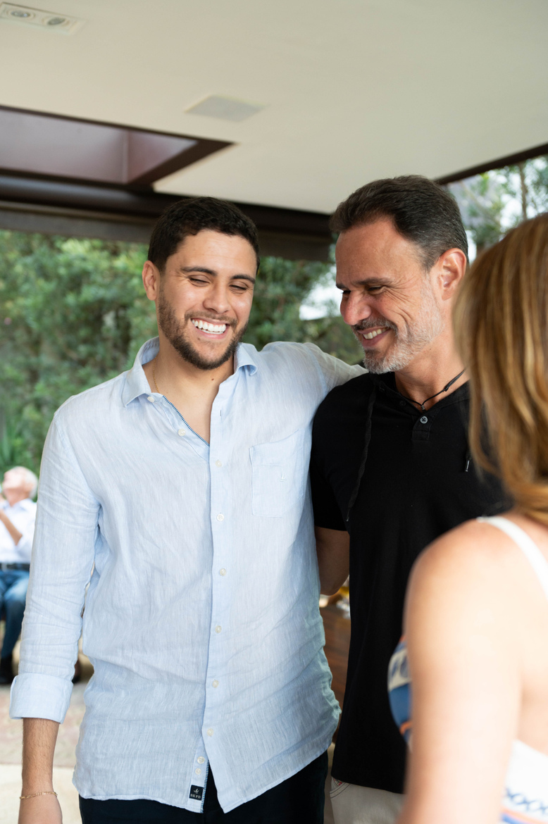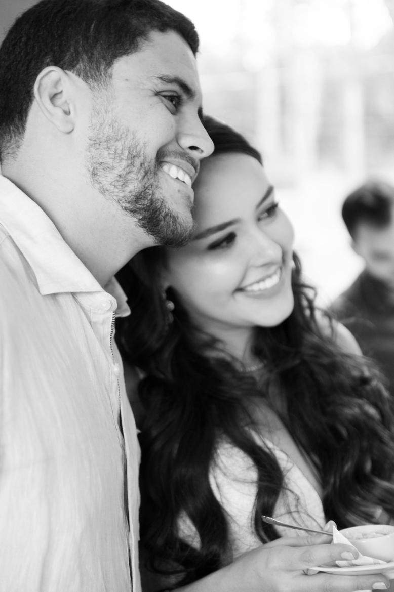 Encontrei uma noiva feliz, empolgada, amorosa, disponível. Um noivo que começou tímido, mas rapidinho estava me pedindo foto. E famílias que transbordaram amor por estar ali, celebrando o noivado do casal R&R.