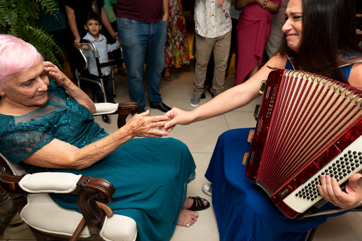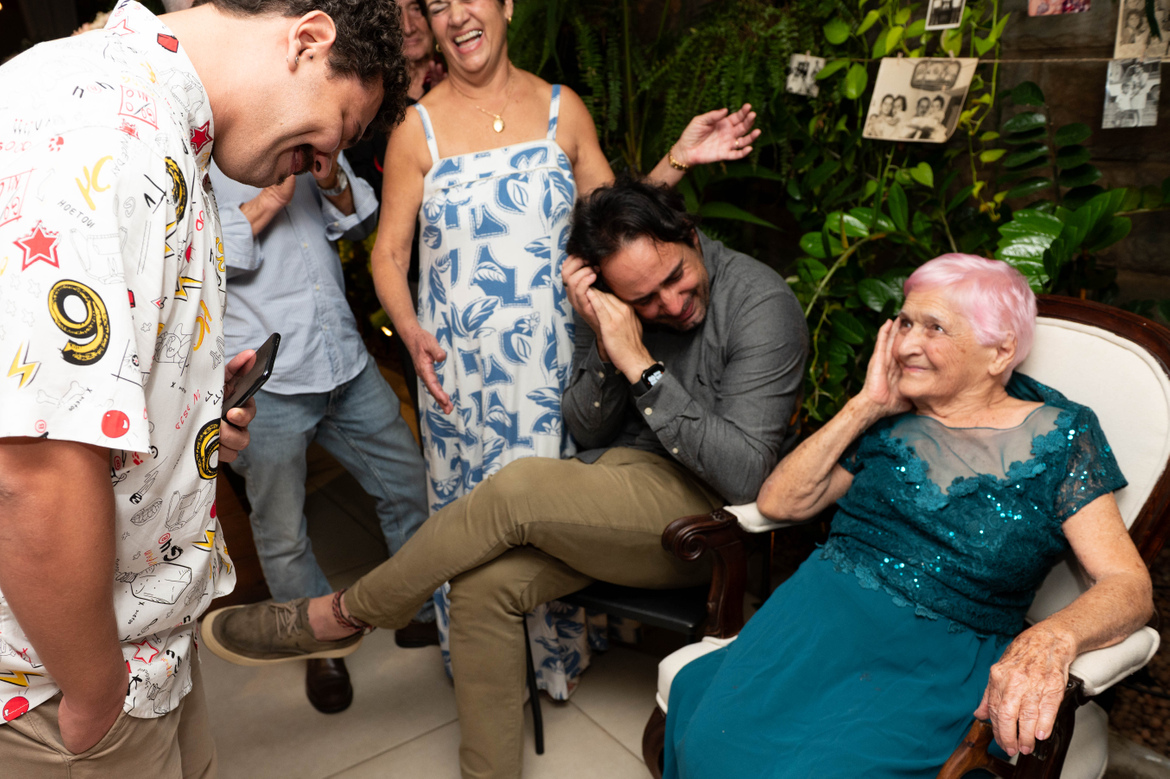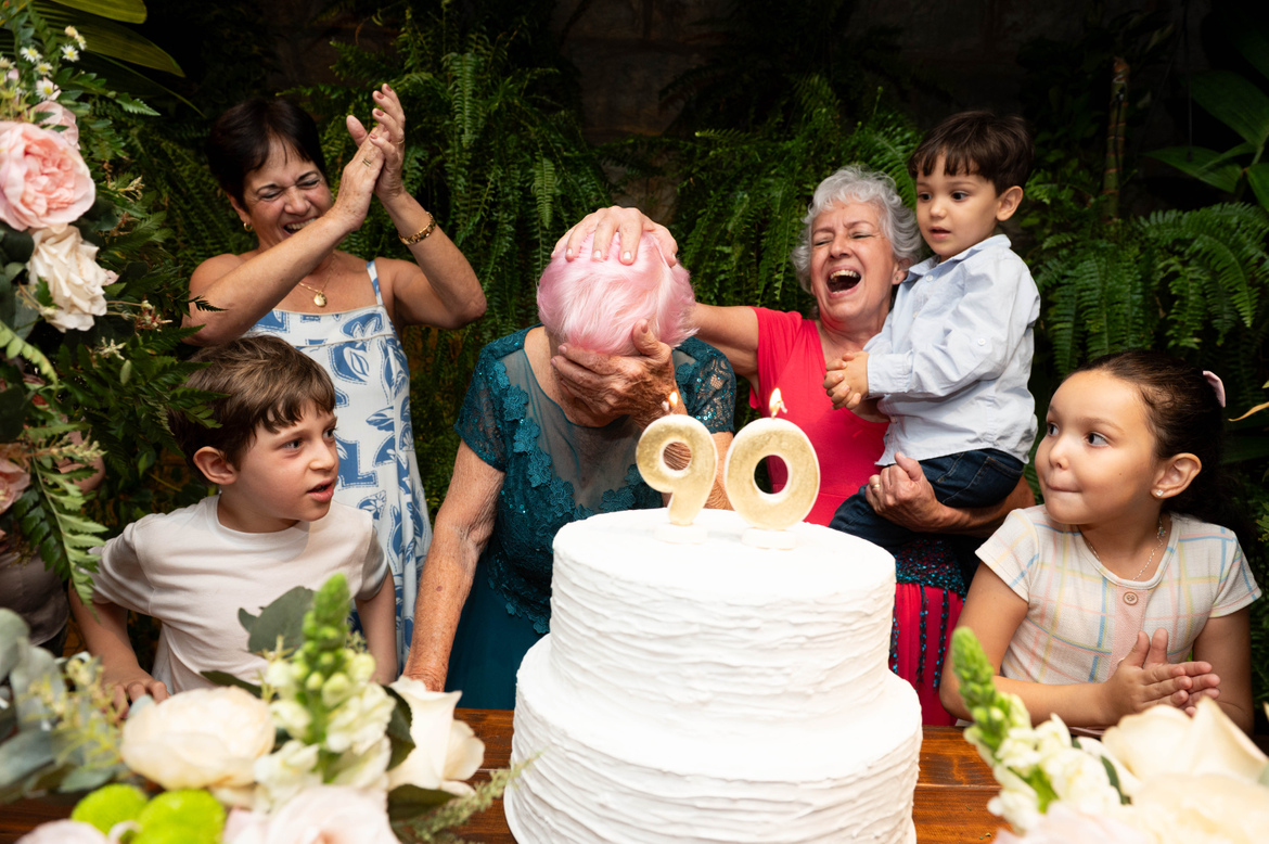 A Dani, uma das netas, foi quem me contratou - e me deu um presente com a emoção que foi essa festa.