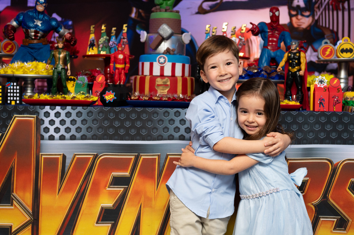 Davi chamou os super heróis e Helena chegou com o mundo congelado da Frozen. E essa combinação resultou em uma festa linda, amorosa e muito especial.